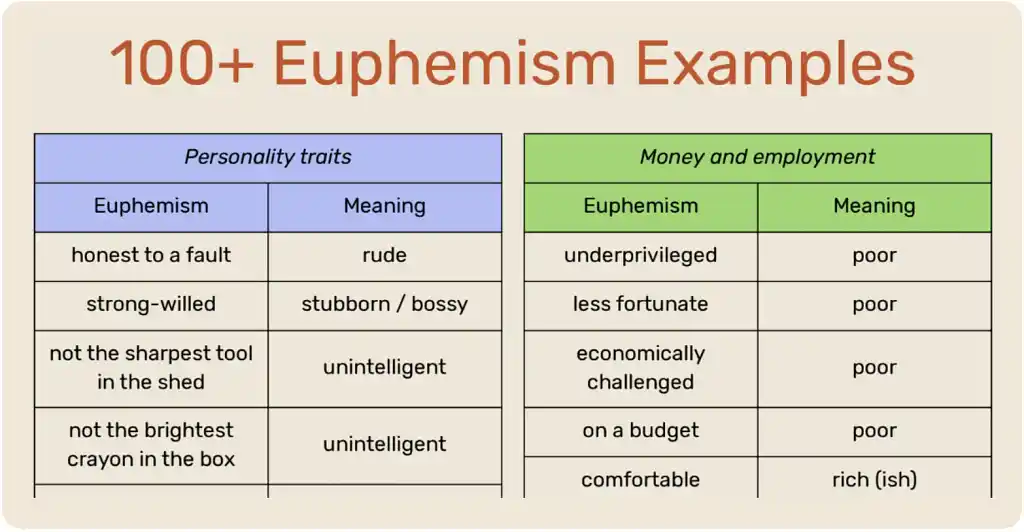 Cheat sheet: 100+ euphemism examples