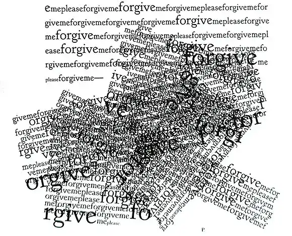Repeating the word “forgive” in spirals across the page makes obsession and mental collapse physically visible to the reader. You don’t just read the character’s distress, you experience it as your eyes struggle to find order.