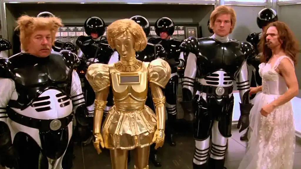 Similarly, the movie Spaceballs repeatedly acknowledges the fact that it is a space movie by, for instance, having the bad guys capture the heroes’ stunt doubles in a chase scene. While this does lean into parody, the humour is based on making the viewer aware of the fact that the story is constructed by a screenwriter and a whole film crew — like all other space opera movies before it.